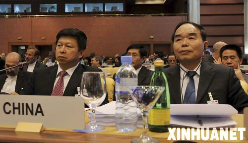 11月9日,中國代表團團長、外交部副部長宋濤(前左)和代表團副團長、監察部副部長兼國家預防腐敗局副局長屈萬祥(前右)在卡塔爾首都多哈出席《聯合國反腐敗公約》第三次締約國會議。為期5天的《聯合國反腐敗公約》第三次締約國會議9日在卡塔爾首都多哈開幕,來自公約締約國、簽署國及多個聯合國專門機構和非政府組織的代表約1000人出席會議。本屆會議將就建立一個審議各國履行《聯合國反腐敗公約》情況的機制進行討論。同時,與會代表還將就如何追回被腐敗分子帶到境外的資產等問題進行探討。新華社記者杜健攝