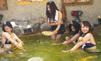 “您可以與金棗共浴!”宜蘭縣礁溪鄉(xiāng)川湯春天溫泉飯店推出“金棗湯”,增加泡湯樂趣,業(yè)者還邀辣妹編了“金棗操”,把落山風、西北雨等融入舞姿,帶游客健康跳一下。