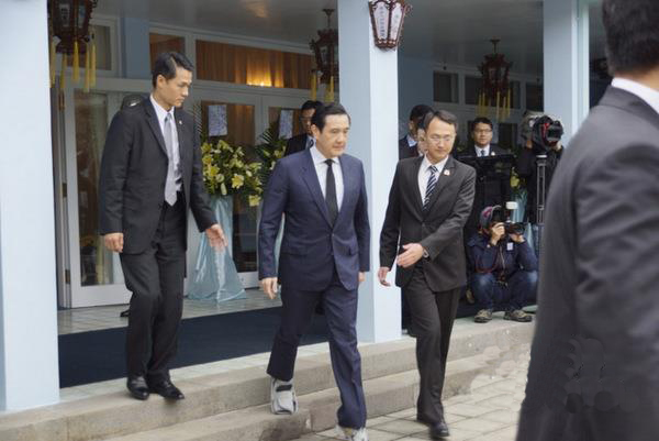 據中評社報道,在前馬辦秘書長曾永權等人陪同下,馬英九今日先在陵寢中庭,擔任主祭者,依照儀式獻花追思。接著進入陵寢,站在蔣經國遺照與靈棺之前,又追思了3分鐘,表情哀戚,黯然離開。