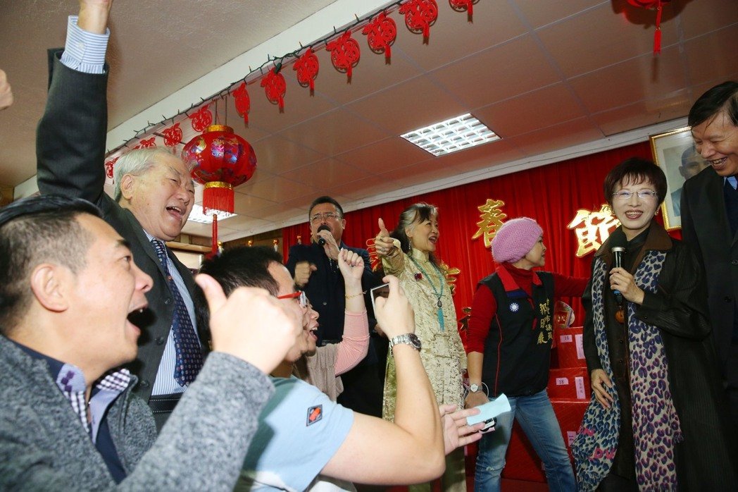 洪秀柱進(jìn)入活動(dòng)會(huì)場后,受到在場民眾歡呼及支持,她還用寧波話跟大家拜年。