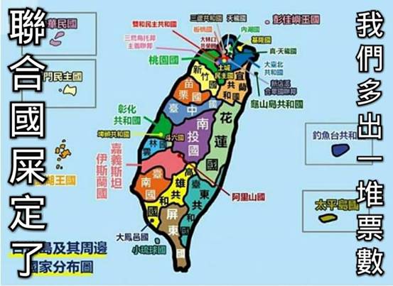 當然,如果“獨立運動”僅僅限于縣市,就太小兒科了,哪能體現“自由意志”呢?于是,“板橋獨立”、“斗六獨立”甚至“龜山島獨立”也都噴涌而出。。。
