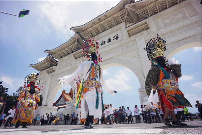 “眾神上凱道”嘉年華下午2點開始出發游行,隊伍行經信義路、杭州南路、愛國東路、中山南路后抵達凱達格蘭大道,現場將搭建舞臺區,由各宮廟進行民俗演出。