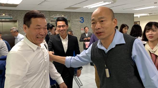 臺北市議員鍾小平(左)今拜會韓國瑜(右),要為“選民服務”討紅包及春聯。(圖片來源:臺灣“中時電子報”)