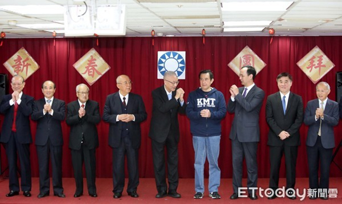國民黨上次“太陽”同臺是在黨中央新春團拜。(圖片來源:臺灣“東森新聞云”)