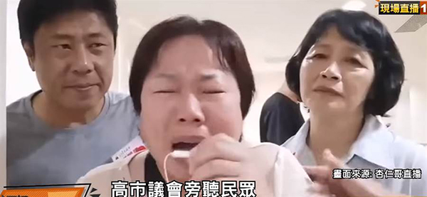 高雄議會旁聽民眾氣哭:綠議員只會作秀。(圖片取自臺媒)
