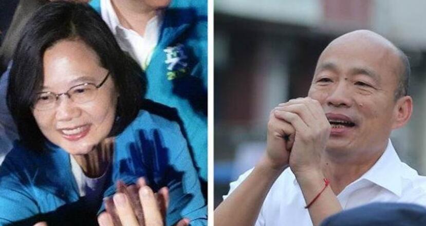民進黨候選人蔡英文(左)、國民黨候選人韓國瑜(右)。(圖片來源:臺灣“中時電子報”)