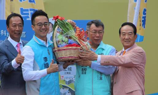 中國臺灣網(wǎng)11月30日訊 據(jù)臺灣《聯(lián)合報》報道,鴻海集團創(chuàng)辦人郭臺銘、民眾黨主席柯文哲及親民黨參選人宋楚瑜三大“政治龍頭”今早都到新北市土城,幫“郭家軍”李縉穎造勢站臺。柯文哲批,過去三年半臺“立法院”的表現(xiàn)不好,“立委”淪為“只有黨意、沒有民意的舉手機器”,柯認為李縉穎在土城參選形成三強鼎立,更直言“擺脫藍綠惡斗的泥淖就看李縉穎能不能當選”“是臺灣重開機的機會”。