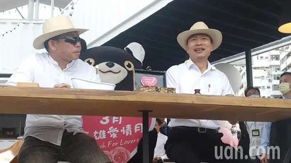 高雄市長(zhǎng)韓國(guó)瑜(右)與觀光局長(zhǎng)邱俊龍(左)上午出席“高雄愛(ài)情月─白色情人節(jié)”記者會(huì)。(圖片來(lái)源:臺(tái)灣“聯(lián)合新聞網(wǎng)”)