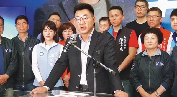 國(guó)民黨主席江啟臣(中)。(圖片來(lái)源:臺(tái)灣《聯(lián)合報(bào)》)