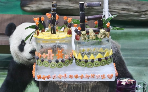 臺北市立動物園為赴臺大熊貓“團(tuán)團(tuán)”準(zhǔn)備的生日冰蛋糕。(圖片來自于臺媒)