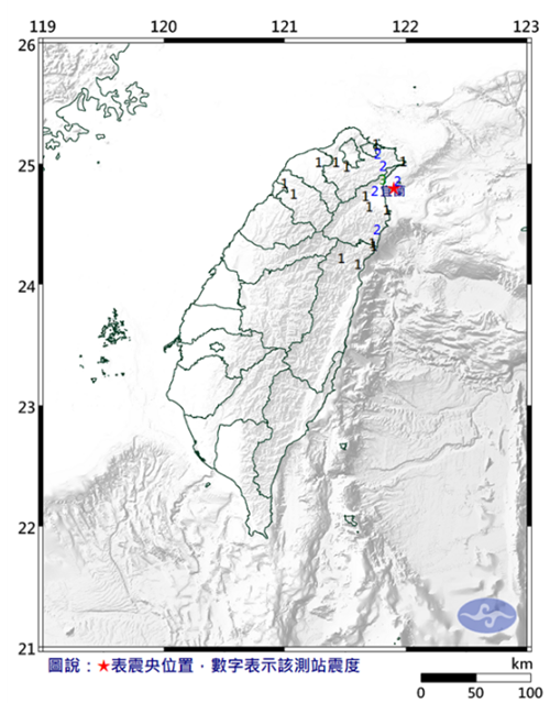 中國臺灣網5月19日訊 據臺灣“中時新聞網”報道,臺灣近日停水、停電、疫情爆炸,現在又有地震。今天下午13:00,宜蘭近海發生規模4.1級地震,地震深度13.5公里,震中在宜蘭縣政府東偏北方15.9公里,位于宜蘭縣近海,各地最大震度為宜蘭縣3級、新北市2級,基隆市、花蓮縣、桃園市、新竹縣1級,臺北也有感。