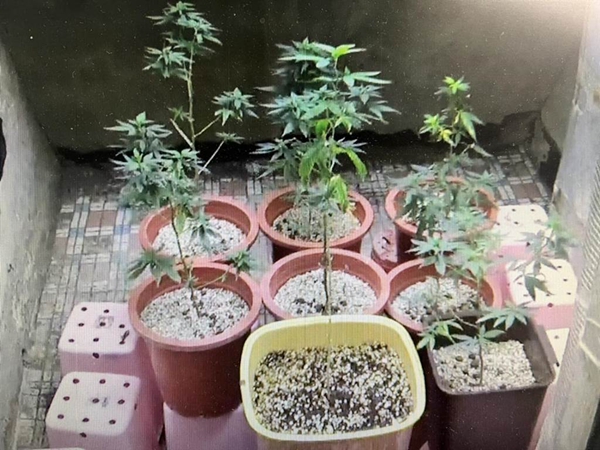 警方查獲許男的大麻園,起獲46株大麻活體株。(圖片取自臺(tái)媒)