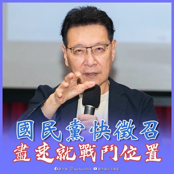 趙少康呼吁中國國民黨盡快征召侯友宜選2024(圖片來源:趙少康社交平臺)