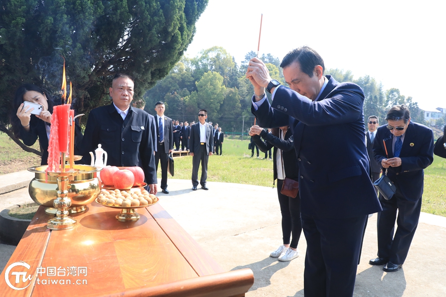 祭祖儀式遵循當地世代承襲的習俗,鳴炮之后,馬英九和家人行三上香禮。(中國臺灣網 尹賽楠 攝)