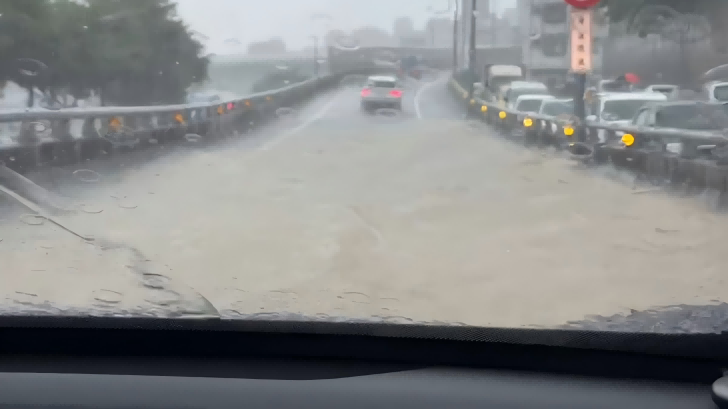 暴雨來(lái)襲!基隆積水“橋上驚見(jiàn)小河”
