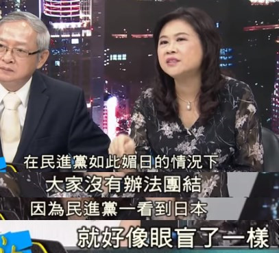 一看到日本,民進黨就腿軟,走不動道,說不出話,看不見東西,誰跟你團結?跟你團結什么?組團當孫子?