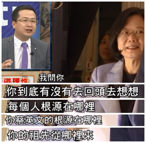 前馬辦副秘書長羅智強在節(jié)目中質問蔡英文,你就沒想過自己的祖先從哪來嗎?