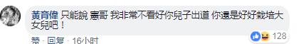 吳宗憲表示,兒子的貼文雖是私人領域,不涉及公共的問題,但覺得這樣的發文并不OK,“我個人覺得,不該講這種鳥話,自以為了不起,就讓他承擔后果,這樣很好!”,他認為,兒子已為公眾人物,應該要了解事情輕重,并承受后果,自己做了什么,就要負全部責任,他也就事論事的指出“看有沒有需要,直接去關也很好”。