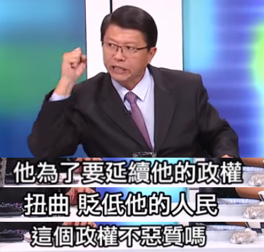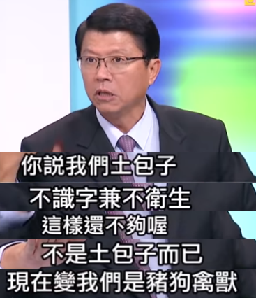 謝龍介在節目中怒批,以前罵我們土包子還不夠,現在要罵我們豬狗禽獸!為了延續執政,這樣詆毀自己的人民,這樣的當局太惡質!
