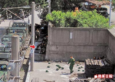 此外,昨上午11時(shí)左右,臺(tái)中縣豐原火車站約有30名穿迷彩裝的臺(tái)軍軍人,疑因天氣太熱,不僅躲至蔭涼處休憩,鋼盔、手套亂扔一通,還有一名軍人在雜亂無章的鋼盔中玩跳格子,路過民眾痛批:“軍紀(jì)渙散!”海軍陸戰(zhàn)隊(duì)66旅政戰(zhàn)主任譚志偉證實(shí),遭民眾拍照的士兵是陸戰(zhàn)隊(duì)軍人。