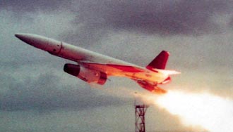 1993年,掛上“介山”發動機的靶機,在臺軍九鵬基地成功試飛,成為臺軍巡弋飛彈的動力來源;在這之前的中流飛彈,則采用遙控靶機的外型設計,可達上百公里射程,是至今才曝光的臺軍秘密計劃。圖片來源:臺灣《聯合報》