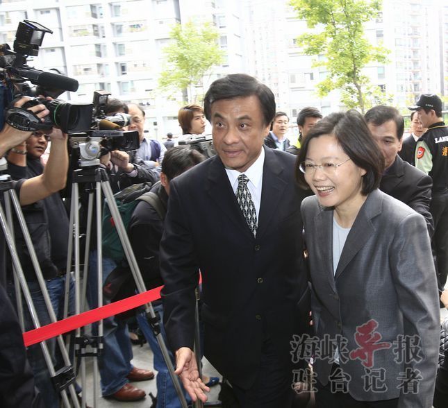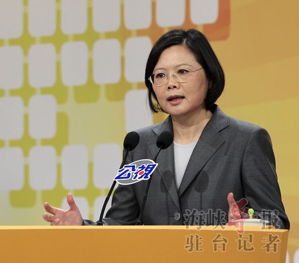 蔡英文身著灰色西裝外套,黑色長(zhǎng)褲,一貫的低調(diào)簡(jiǎn)潔裝扮。