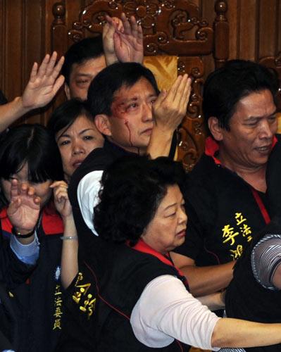 臺灣“立法院”昨天爆發肢體沖突,藍綠各有一名“立委”掛彩送醫。吳育升右臉遭計時器砸傷、縫八針,民進黨“立委”郭玟成被人推落主席臺,兩人都送往臺大醫院治療;臺“行政院長”吳敦義、“立法院長”王金平分別前往探視。