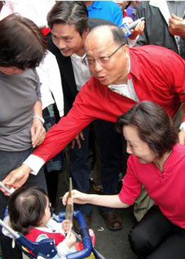 胡志強一大早先到市府召開主管會報,向一級主管宣布從今天起開始請假投入選戰,請假生效后,胡志強偕同太太邵曉鈴前往金谷市場,由金溥聰陪同,一起向民眾及攤商拜票。