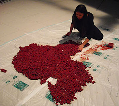 馬唯中與蔡佳葳合辦《Lovely Daze》雜志,圖為蔡佳葳在2009年做“豬血地圖”。圖片來源:臺灣“聯合新聞網”