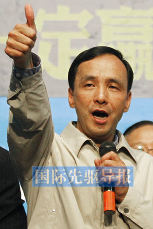 《國際先驅(qū)導(dǎo)報(bào)》記者鄧亞君發(fā)自北京 11月27日,朱立倫以領(lǐng)先10萬余票的優(yōu)勢擊敗民進(jìn)黨主席蔡英文,當(dāng)選新北市市長。盡管喜悅之情溢于言表,但此時(shí)他擺擺手,謝絕談?wù)摵姥詨阎尽?/P>