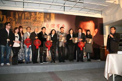 圖為“感恩之夜”活動當晚,蔡英文(右四)與臺藝人豬哥亮(右三)同臺造勢。圖片來源:臺灣《中國時報》