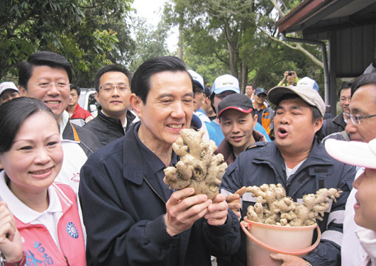 臺灣地區(qū)領(lǐng)導(dǎo)人馬英九昨天(27日)上午到臺南參加國民黨青年部舉行的“百年首登大凍,臺灣幸福啟動”活動,登山途中有民眾還送他一桶山姜,祝他“一統(tǒng)江山”,寓意2012大勝。