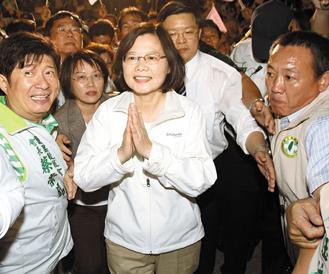 蔡英文昨天在高雄舉行造勢晚會,希望爭取支持,代表民進(jìn)黨參選2012。(圖片來源:臺灣《聯(lián)合報》)