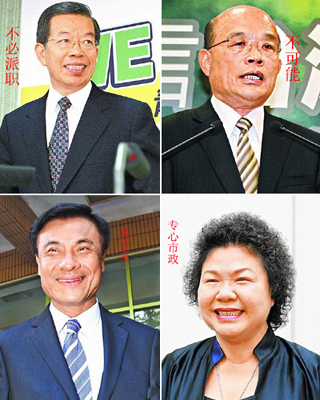 謝長廷、蘇貞昌、蘇嘉全及陳菊,被點名是蔡英文副手的可能人選,四人受訪時均避談此議題。圖片來源:臺灣媒體