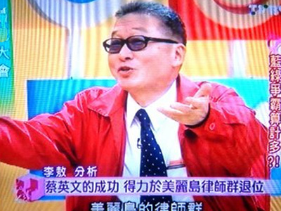 據(jù)報(bào)道,李敖上鏡評(píng)論2012年臺(tái)灣地區(qū)領(lǐng)導(dǎo)人選舉,認(rèn)為臺(tái)灣有機(jī)會(huì)出現(xiàn)女性地區(qū)領(lǐng)導(dǎo)人,蔡英文是新的形象牌,像是“經(jīng)期不調(diào)的女學(xué)生”,有機(jī)會(huì)勝出。李敖此話一出,嚇壞節(jié)目現(xiàn)場(chǎng)一堆名嘴,之后李敖把“經(jīng)期不調(diào)的女學(xué)生”修正為“清純的女學(xué)生”。李敖雖然肯定蔡英文是形象牌,但也很不留情的說,蔡英文是偷走民進(jìn)黨的賊,從既得利益者,也就是美麗島的律師群手中偷走民進(jìn)黨,所以是賊;而且還是“道德的摧毀者”。