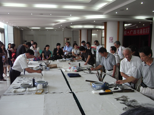 中國臺灣網8月17日南寧消息 8月16日,“情系八桂——兩岸文化聯誼行”大型文化交流活動走進廣西,這一天也恰巧正逢中華民族共同的“七夕”。兩岸文化界知名人士走進邕江畔的邕江灣美術館,進行了一場別開生面的交流筆會。