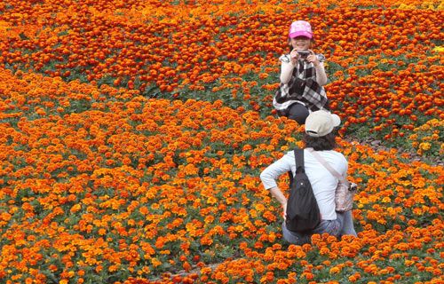 臺(tái)氣象部門(mén)表示,6日白天全臺(tái)多云到晴,傍晚受鋒面影響,北部、東北部云量增多,有零星降雨機(jī)會(huì)。圖為民眾趁著好天氣,欣賞大片美麗的花海。 圖片來(lái)源:“中央社”