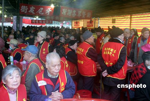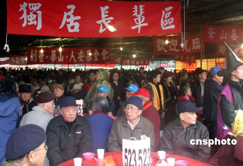 年終歲末,全臺灣正在流行尾牙宴。二日中午,今年最大的一場尾牙宴在臺北松山煙廠席開七百桌。七千多流浪街友及獨(dú)居老人共同圍爐,迎接農(nóng)歷新年。 中新社發(fā) 徐長安 攝