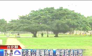 來到新海橋下的河濱運動公園,就在自行車往來頻繁、民眾慢跑散步的地點,竟然傳出有殯葬業者光天化日之下,在公共場所曝曬尸骨。放了白布,整副人骨就隨地風干,業者看管累了,還可以在一旁休息。民眾大嘆不衛生,也會驚嚇到小朋友,就連附近的禮儀公司也說,這樣做對死者相當不敬。