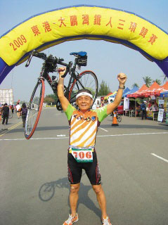友人說“阿炳伯”75歲仍像一尾活龍,他回憶初接觸鐵人三項運動是在60歲,以不到3小時成績完成時,每個人都瞪大了眼,他自此迷上這項耐力大考驗的運動,前年參加距離加倍的113公里超級鐵人三項比賽,在50歲組可排第4,“我要證明,鐵人三項不是年輕人的專利”。