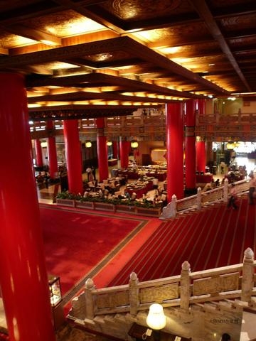 圓山飯店大廳,七彩畫梁、丹珠圓柱、金碧輝煌,雄偉壯麗的氣勢不同凡響,及具特色。