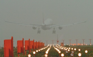 臺北桃園機場仍可起降飛機,但馬祖機場因能見度過低,暫時關閉,圖片來源:臺灣《聯合報》