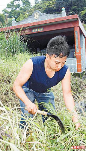 臺灣業(yè)者推出“代客掃墓”服務(wù),幫人上墳除草、打掃,近一個月來業(yè)績驚人。 來源:臺灣《蘋果日報》