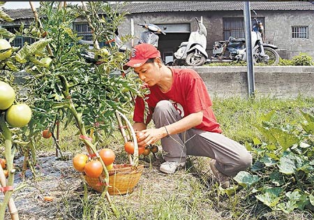 張碩文經營實體版開心農場,民眾可上網下指令,他有時也會下田代客種菜