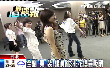 當天下午,臺北市女議員脫下厚重套裝,換上輕便服,綁起馬尾,在臺北市議會勤練舞步。她們平日問政很犀利,跳起舞來也很認真。