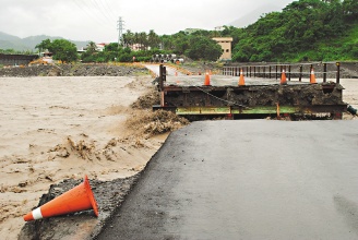 昨天上午10時許,六龜鄉(xiāng)六龜大橋旁的便橋因支撐不住暴漲荖濃溪水沖刷,中間一截應聲斷裂,工務段緊急管制封閉;新開部落聯(lián)外的新寶橋旁便橋也同樣遭荖濃溪水沖毀,百余戶新開部落居民無法外出,臺軍昨天一度冒雨搶通便道。
