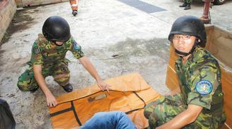 昨天早上10點左右,身材嬌小的李柏穎頂著艷陽天,雙手抱著用報紙簡單包裹住的未爆彈,從住家徒步走了600米,到消防隊求助。他神情緊張,欲言又止,值日的小隊長李澍蔚很疑惑,主動關心“小朋友,有什么事嗎?”