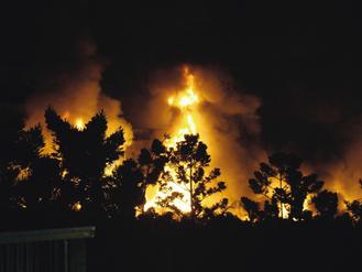 到昨晚為止,火災現場依然烈火熊熊,照亮附近天空。(圖:臺灣《聯合報》)
