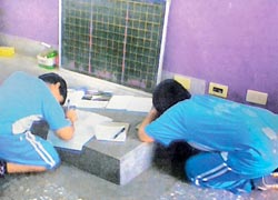 臺中縣某小五年級老師被學生家長爆料,強迫學生跪地寫字,老師辯稱只是讓孩子蹲著,家長出示以手機錄下的證據,顯見孩子跪在講臺寫作業。圖片來源:臺灣《中國時報》
