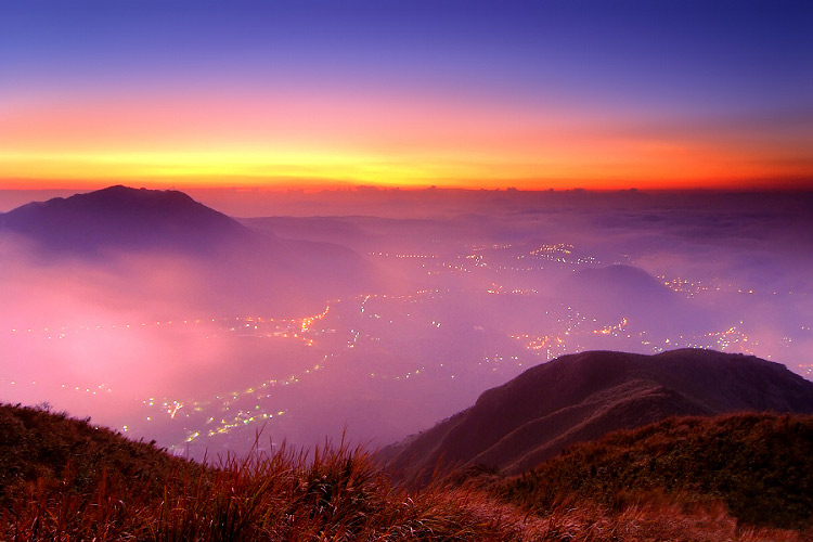 臺(tái)北市附近大屯山火山群美麗的晚景。資料圖